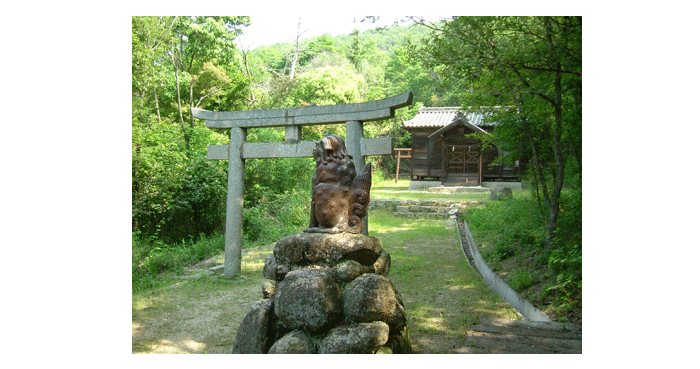 大山昨命( おおやまくいのみこと ) を祭神とする旧村社で旧賞田村の氏神である。上道村誌には由緒不詳とあり、おそらく延暦寺と日吉神社との関係のように、この地に天台宗安養寺が社増として祭祀した神社であったが、社寺整理のとき引き離して神官奉仕する神社としたのであろう。吉備温故秘録上道郡脇田村の条に「山王権現(9月15日祭り)」と載せている。