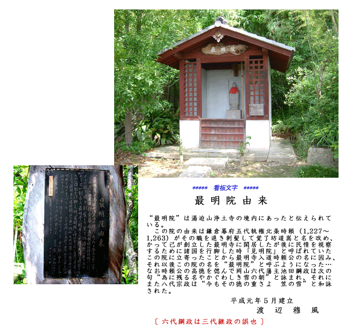それ以後、最明寺入道時頼卿の名にちなみ、この院を「最明院」と呼ぶようになった。